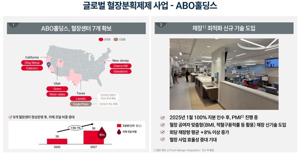 ABO 편입 이후 채혈센터 증설로 물량이 급증하며 외형은 반기 대비 약 3배 수준으로 확대됐다. 다만 혈장 평균단가가 전년 대비 약 9% 하락한 데다, 채혈 이후 검사와 판매까지 시간이 소요되면서 재고와 자금 부담이 함께 늘어나는 구조다. 그룹은 미국 혈장 네트워크를 핵심 공급망으로 묶고, 해당 사업을 글로벌 혈장 공급망 확충을 위한 고투자·고성장 축으로 관리하고 있다.